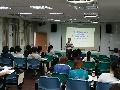 105武漢國中到校輔導 透過摺紙、立體教具操作等教學活動,帶領老師實際操作,並相互交流。 |
